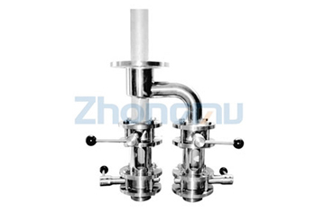本組合由H管、對夾式蝶閥(衛(wèi)生蝶閥)、視鏡、法蘭接頭、軟管接頭組成一體。裝在露天發(fā)酵罐的錐底部,在出酒,排酵母時,直觀明顯,接管、卸管十分方便。其進口規(guī)格有DN50、DN65、DN80、DN100等多種。